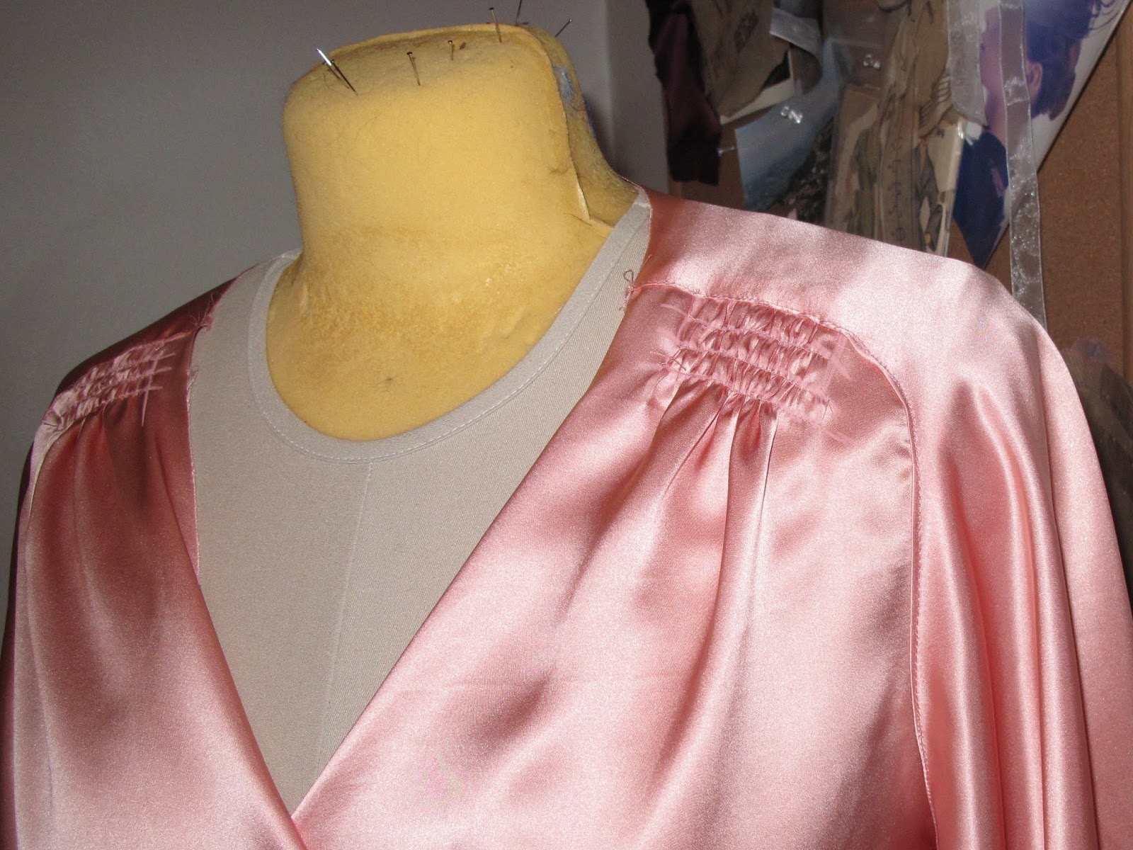 For my wardrobe I made a coordinating skirt and blouse in a purple floral rayon with a white silk chiffon yoke, a high-waisted leather pencil skirt, and a long sleeve tee in a cream color jersey. The purple print skirt was self-drafted, the blouse was loosely based on Simplicity 3688. I made the skirt from Vogue 1324. Which I discussed at LENGTH in posts from earlier this month.